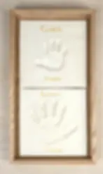 Las huellas de tu bebé grabadas directamente en arcilla, las convertimos en una placa de cerámica de alta calidad y las enmarcamos. Todo ello totalmente personalizado: composición, colores, formas, volumen, marcos, fondos, etc.
